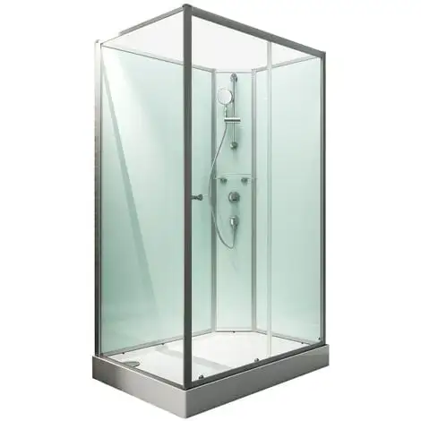 – Tout en 1 : kit complet (receveur acrylique, parois, robinetterie, panneaux muraux)