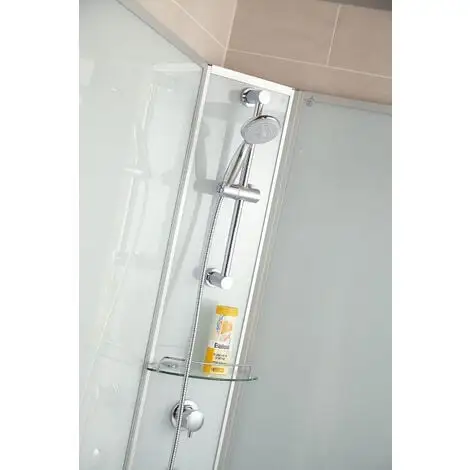 – Tout en 1 : kit complet (receveur acrylique, parois, robinetterie, panneaux muraux)
