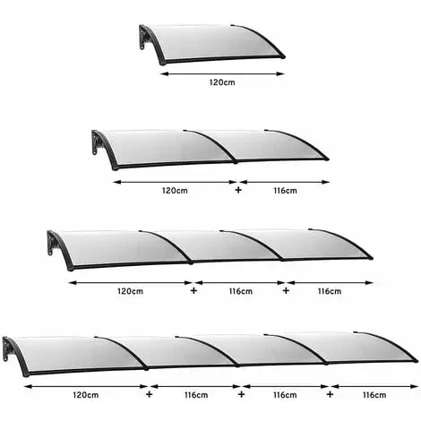 Auvent marquise de porte, verre polycarbonate transparent, 120 x 80 cm