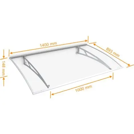 Auvent marquise de porte, verre polycarbonate transparent, 140 x 90 cm