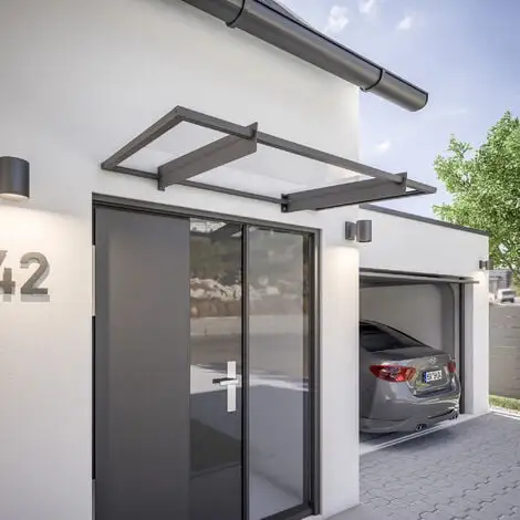 Auvent marquise de porte, verre transparent, fixations anthracite, 150 x 95 cm