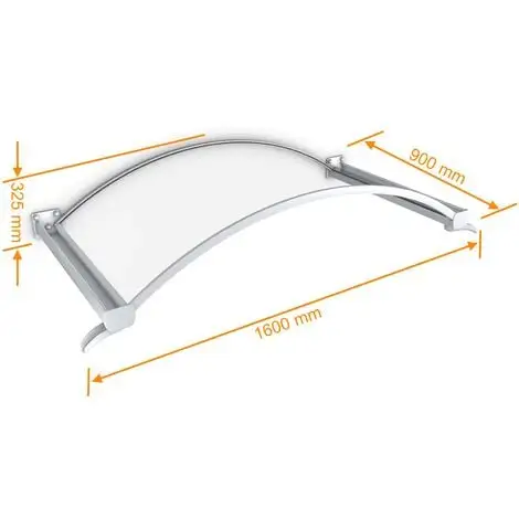 Auvent marquise de porte, verre polycarbonate transparent, 160 x 90 cm
