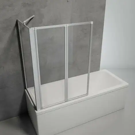 Pare baignoire à coller 2 volets + paroi de retour fixe, 87 x 75 x 120 cm, verre transparent, profilé alu-argenté