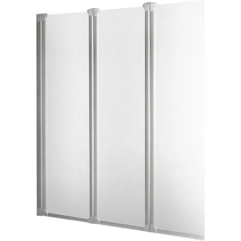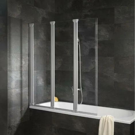 Pare-baignoire rabattable avec 3 volets, 124 x 130 cm, verre transparent 5 mm, profilé alu-argenté