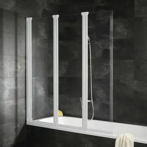 Pare-baignoire rabattable avec 3 volets, 124 x 130 cm, verre transparent 5 mm, profilé blanc