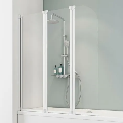 Pare-baignoire rabattable 125 x 140 cm avec 2 volets, verre transparent, profilé blanc