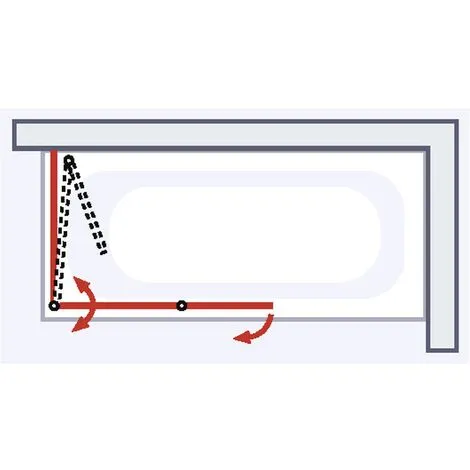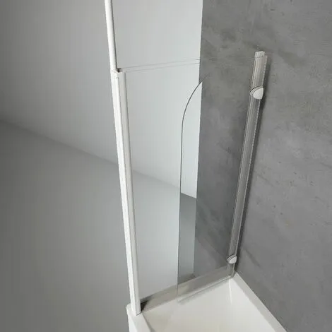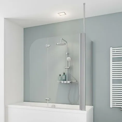 Pare-baignoire rabattable avec paroi latéral, 70 x 114 x 140 cm, 2 volets + 1 paroi latéral, verre transparent, profilé alu-argenté
