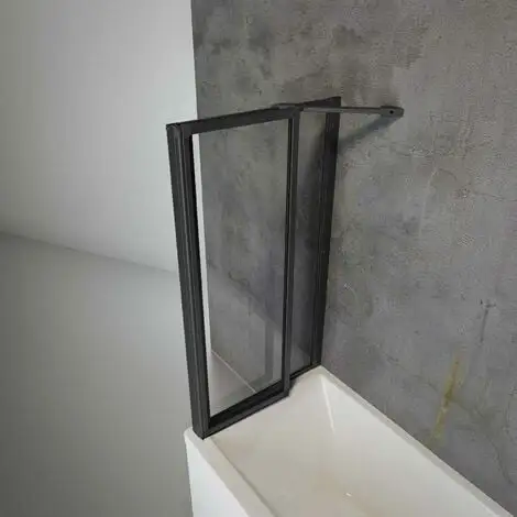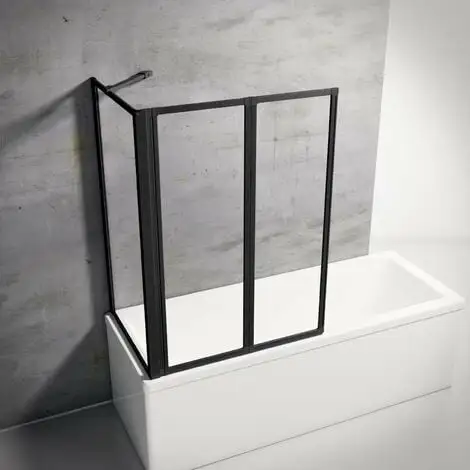 Pare baignoire à coller 2 volets + paroi de retour fixe, 87 x 70 x 120 cm, verre transparent, profilé noir