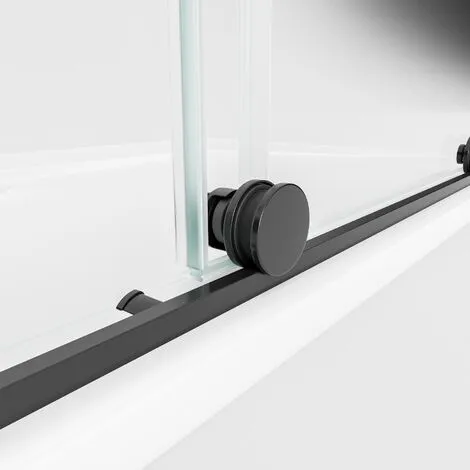 Porte de douche coulissante en niche 100 x 200 cm, profilé noir, roulettes en bas