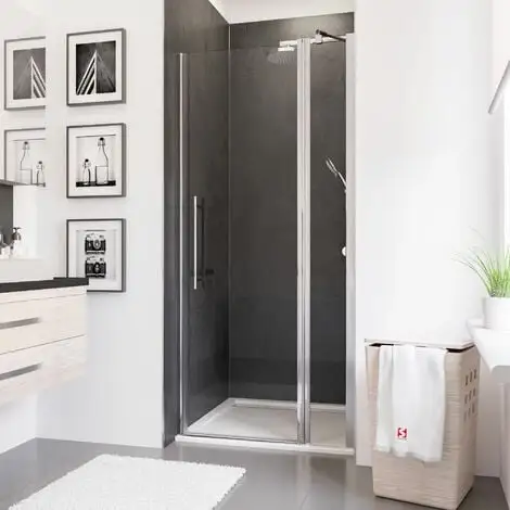 Classique, la porte de douche pivotante a l’avantage de s’ouvrir rapidement et facilement : il suffit de tirer la porte vers soi pour accéder à sa douche. De plus, la largeur de son ouverture permet de rentrer aisément dans sa douche. Sa fonctionnalité saura vous convaincre !