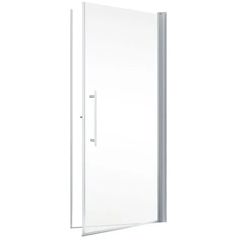 Porte de douche pivotante 80 x 192 cm, verre transparent anticalcaire, profilé alu-argenté