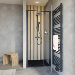 Porte De Douche Pivotante, Verre 6 Mm Transparent, Profilé Noir, Trend 2.0 Schulte, 80 X 200 Cm