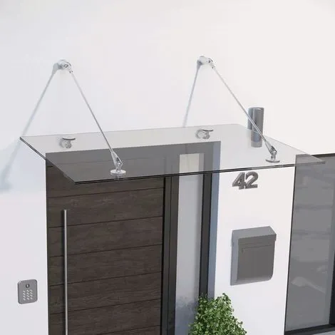 La marquise de porte est composée de deux plaques superposées en verre vériable de 6 mm d’épaisseur. Les fixations au mur sont en inox brossé. La plaque, comme les fixations murales, sont résistantes contre les intempéries et les UV.